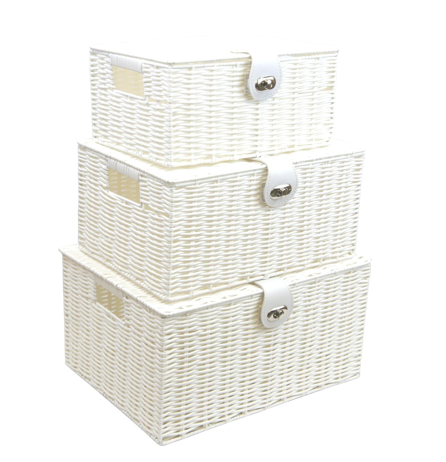 5 out of 5 stars. Juvale 2 pack woven wicker baskets with lids and removable liner, white (2 sizes) juvale. 9.75'' h x 15.75'' w x 11.75'' d. The lid conceals what's inside and allows for easy stacking with other baskets next to a media console. 5 out of 5 stars (307) 307 reviews $ 22.00.